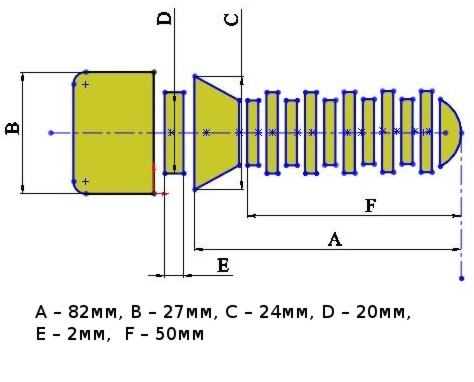 Dimensions: A- 82mm, B - 27 mm, S - 24mm, D- 20mm, E- 2mm, F- 50mm