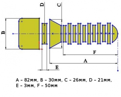 Dimensions: A - 82mm, B - 30 mm, S - 26mm, D- 21mm, E- 3mm, F- 50mm